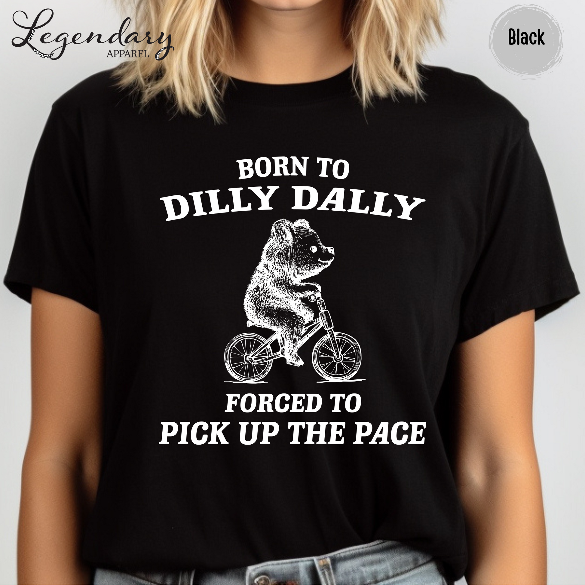 Funny Y2K Shirt Born To Dilly Dally Forced To Pick Up The Pack Tee Shirt Vintage Bear Meme Shirt Retro Shirts Funny Bear on Bicycle Shirt