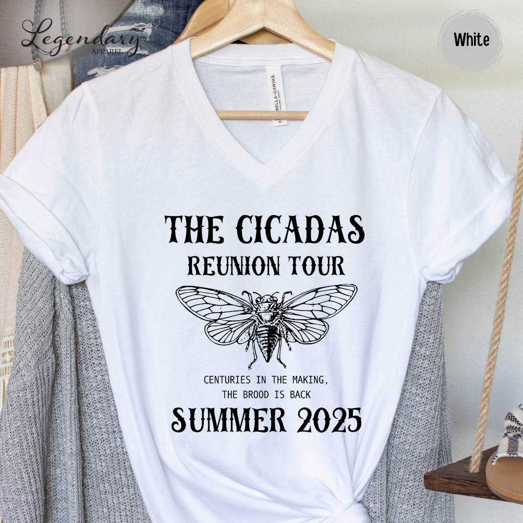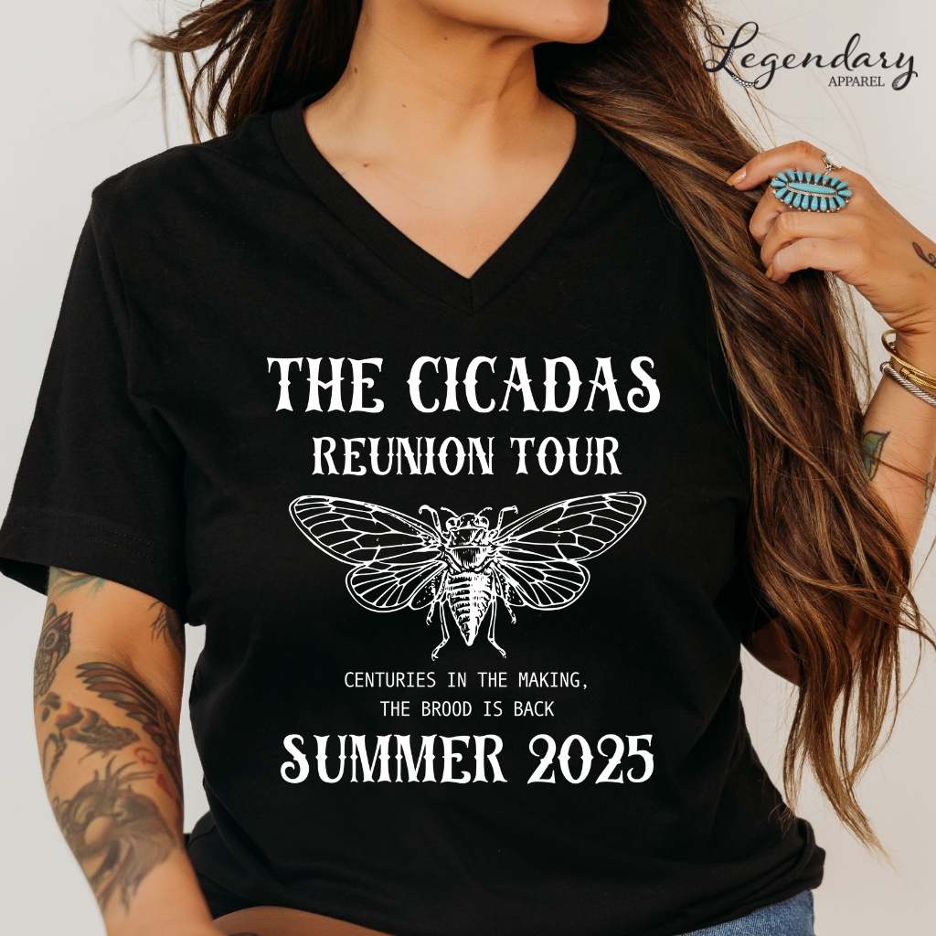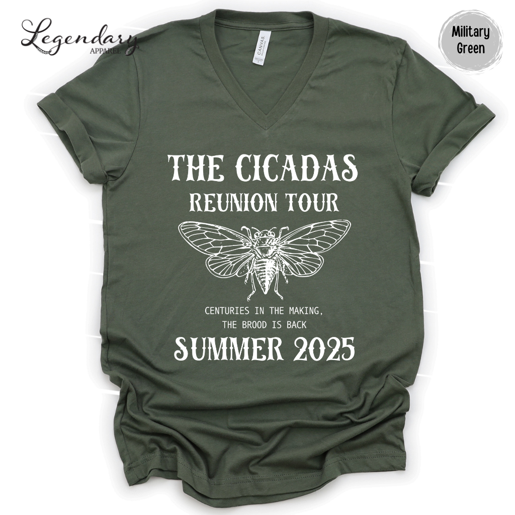 The bugs are back and they're louder than ever! Celebrate the ultimate underground headliners with our Cicada Comeback Tour 2025 v-neck tee shirt – featuring the slogan Sing. Dance. Molt. This funny nature-inspired tee is perfect for bug lovers, entomologists, and anyone hyped for the 17-year cicada emergence. Rock it at summer parties, science fairs, or just to remind the world that even bugs know how to make a dramatic comeback. Limited edition – just like the cicadas.